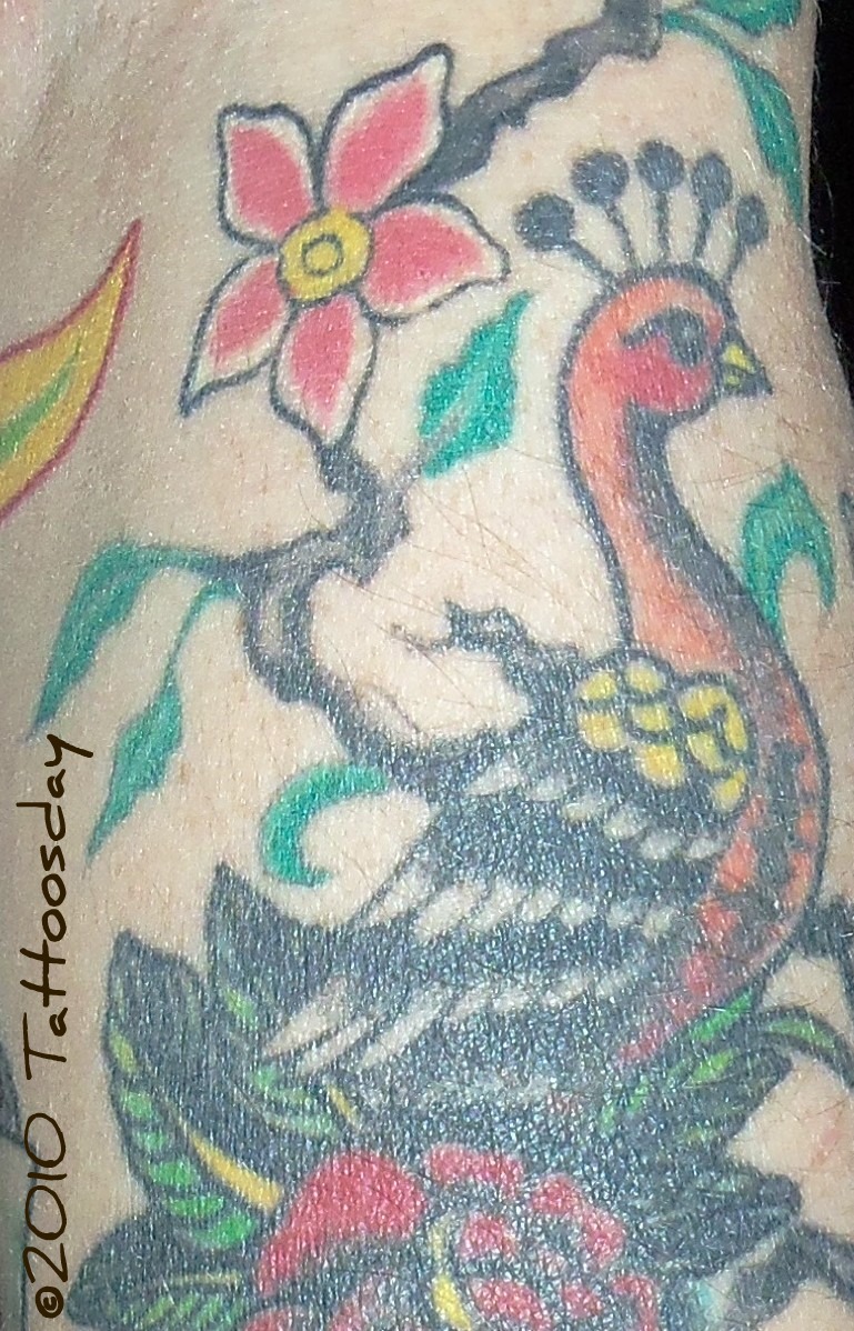 Darya explained that she always wanted a peacock tattoo, and she has fourteen tattoos in all (not all peacocks). Joe Maggs at Brooklyn Ink tattooed the peacock.